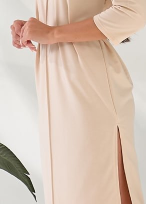 Сукня вільного крою з розрізами у довжині міді — це універсальна річ, яка легко доповнить будь-який гардероб. Завдяки продуманому дизайну вона виглядає елегантно та водночас дарує комфорт на кожен день..